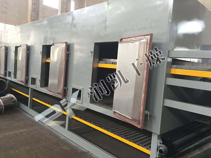 d) 網(wǎng)帶寬度較大,因此需注意熱風(fēng)的分配問題,保證產(chǎn)品質(zhì)量穩(wěn)定。同時(shí)需保證熱風(fēng)能全部穿過物料,防止漏風(fēng)。