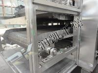 此套 非標(biāo)帶式干燥機干燥主機機寬2000mm,干燥段長22000mm,產(chǎn)量為1000kg/h。干燥機分別有加料器、干燥床、熱交換器及排濕風(fēng)機等主要部件組成,在傳統(tǒng)網(wǎng)帶式干燥機基礎(chǔ)上研究開發(fā)而成,具有較強的針對性,實用性。帶式干燥機適用于透氣性較好的片狀、條狀、顆粒狀物料的干燥,對于脫水蔬菜、中藥飲片等含水率高、而物料溫度不允許高的物料尤為合適;該系列干燥機具有干燥速度快、蒸發(fā)強度高、產(chǎn)品質(zhì)量好的優(yōu)點。對于脫水濾餅的膏狀物料,需經(jīng)造?;蛑瞥砂魻詈笠嗫筛稍?。